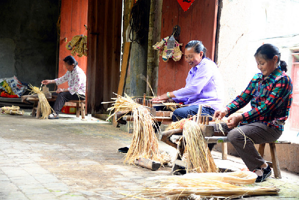 峨嵋之巔,白衣磊落 歷史村落,手起藝秀 回庭院廊,花開錦繡