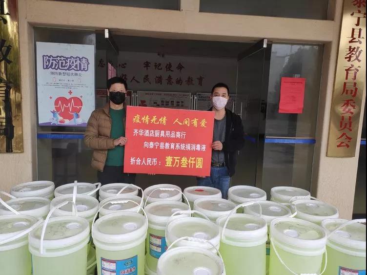 當前,正是各地籌措疫情防控物資極度困難的時期,防疫物資一度告急。眼看學校復學在即,為確保開學后師生健康,保障教育教學正常秩序,縣教育局雖然四處奔走積極籌措,但仍面臨疫情防控物資短缺和貨源難尋的困難。為此,日前,教育局向社會發出了募捐倡議。 倡議書發出后,愛心企業與市民積極響應。齊華酒店廚具用品商行多方奔波購買防疫物資,向縣教育局捐贈一批消毒液,折合人民幣1.3萬元;福建天辰工程管理服務有限公司、泰寧惠又佳藥店、市民余東玲女士、鄧婷女士、鄧紅玲女士......紛紛捐贈了84消毒液、醫用酒精等,這些衛生用品將全部用于各校開展校園衛生防疫消毒工作,助力泰寧教育系統疫情防控。