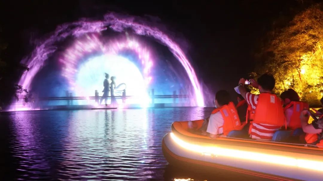 今年上半年,因疫情游客量較往年大幅減少。景區把旅游“空檔期”轉化為景區提質改造的“黃金期”,投入3800多萬元進行項目提升,把最前沿的5D、全息投影、燈光秀等技術,與九龍潭特有的水上丹霞地貌、巖石、洞穴等原生態實景相結合,呈現多層次、立體化、行浸式夜游,打造全省乃至全國景區夜游標桿項目。 今年6月,夜游九龍潭提升項目正式啟用。作為福建省首家“行浸式”水上峽谷夜游景區,利用聲光電技術,在景區的湖面、叢林、崖壁、部分環湖棧道進行布置,打造“叢林穿越”、“仙境奇峽”、“光影奇秀”三大區域景觀亮點,將景區實景與光影技術相結合,讓游客真切地感受“白天觀山景,晚上賞光影”的絕妙意境。 項目的啟用,填補了泰寧縣夜間旅游領域的空白,同時得到了全國各地游客一致稱贊。 夜游九龍潭提升項目是泰寧縣堅持全景打造,豐富全域產品供給項目之一。