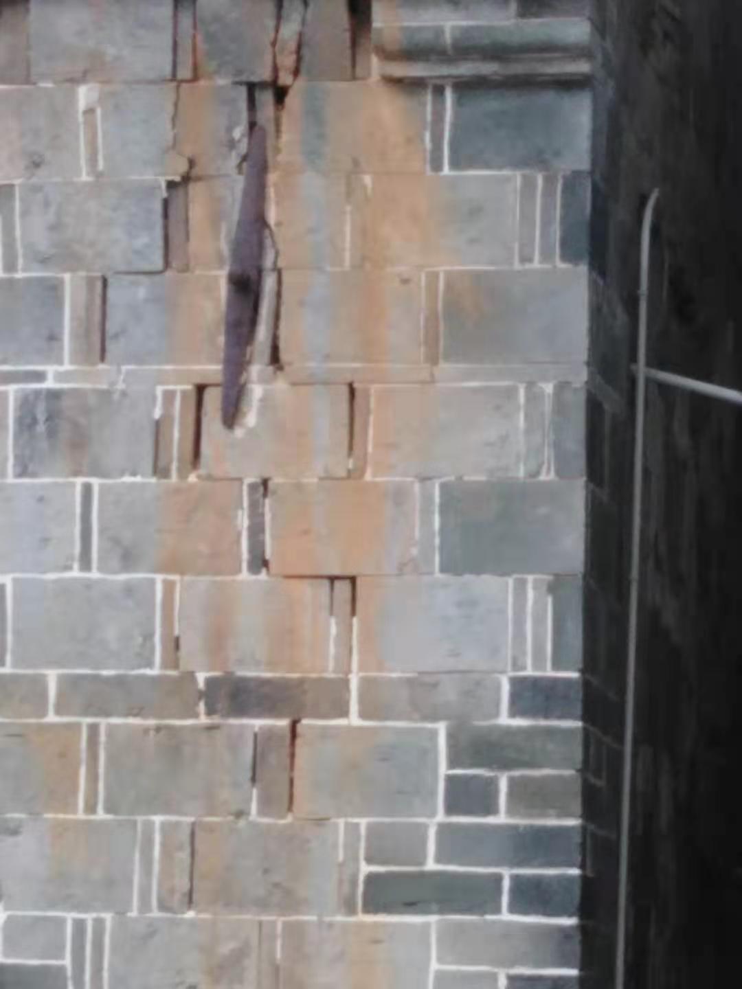 △墻體開裂 為了留住鄉愁,保護好這一難得的歷史文化遺產,王明村積極發動村民籌資酬勞參與保護,同時向上申請資金,對該古建筑進行保護性修繕維護。
