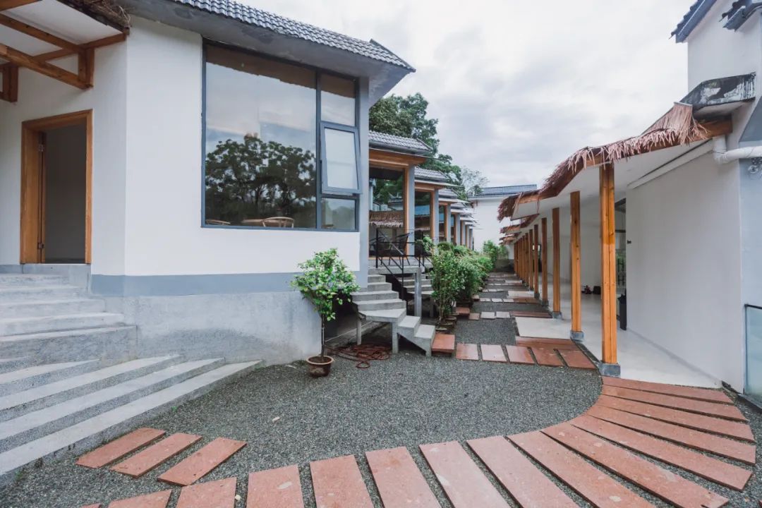走進位于大金湖核心景區境元森林康養基地,映入眼簾的是風洞碼頭的閱山水舍境元民宿,別具一格的民宿房依山傍水而建。
