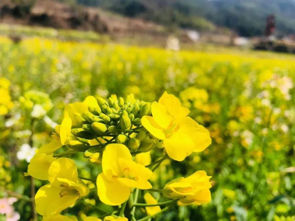 ?在泰寧縣梅口鄉擁坑村玫瑰谷,一簇簇艷麗的櫻花象燃燒的火焰,爭相陸續開放,嫣紅的櫻花向人們展示春天的氣息?;ㄩ_季節,這櫻花的爛漫是最浪漫的,你看那翩翩的花瓣散落,微風吹過,如春雨纏纏綿綿。 油菜花——油菜花花語:加油