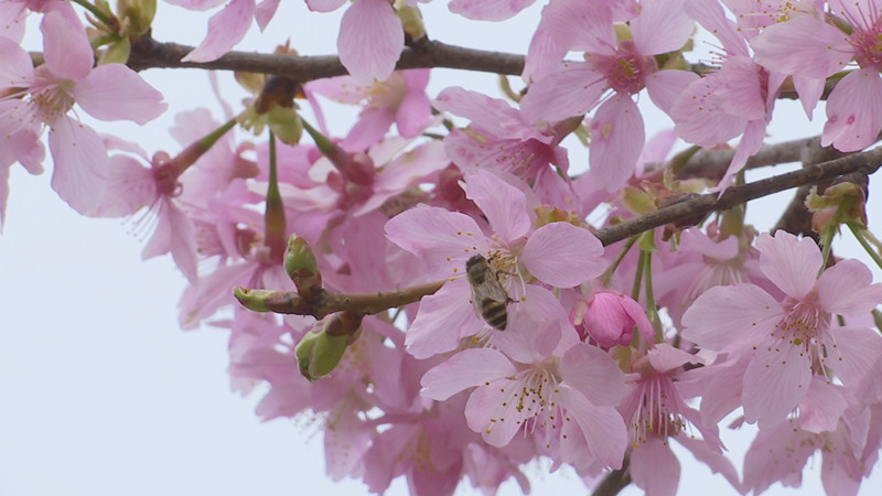 在泰寧縣環(huán)城路橫五線,道路兩邊的櫻花迎春競(jìng)相綻放,延綿開(kāi)來(lái),一簇簇艷麗的花朵綴在枝間枝頭迎風(fēng)招展,如春雨纏纏綿綿,甚是浪漫。
