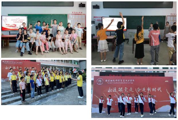實踐團隊的老師耐心指導杉城鎮中心小學的孩子們把對黨和國家的熱愛,用一筆一劃寫下。通過基礎筆法知識,耐心地講解,孩子們逐漸摸索出技巧來,寫下了一句句樸實而又真摯的話語。 辦實事,分享一段學習成效 在學校開展了融知識性、趣味性、教育性為一體的黨史知識競賽,通過此次競賽讓孩子們在互動中進一步強化了黨史學習教育內容,同時檢驗了近期黨史學習教育成效。同時,舉辦了一場以“永遠跟黨走 奮進新時代”為主題的演出,活動現場,載歌載舞,學生、家長、老師、黨員們歡聚一堂,展示了詩朗誦、書法作品、健身運動、合唱等節目,展現了杉城人民奮發進取、昂揚向上的精神面貌,掀起黨史學習教育熱潮。