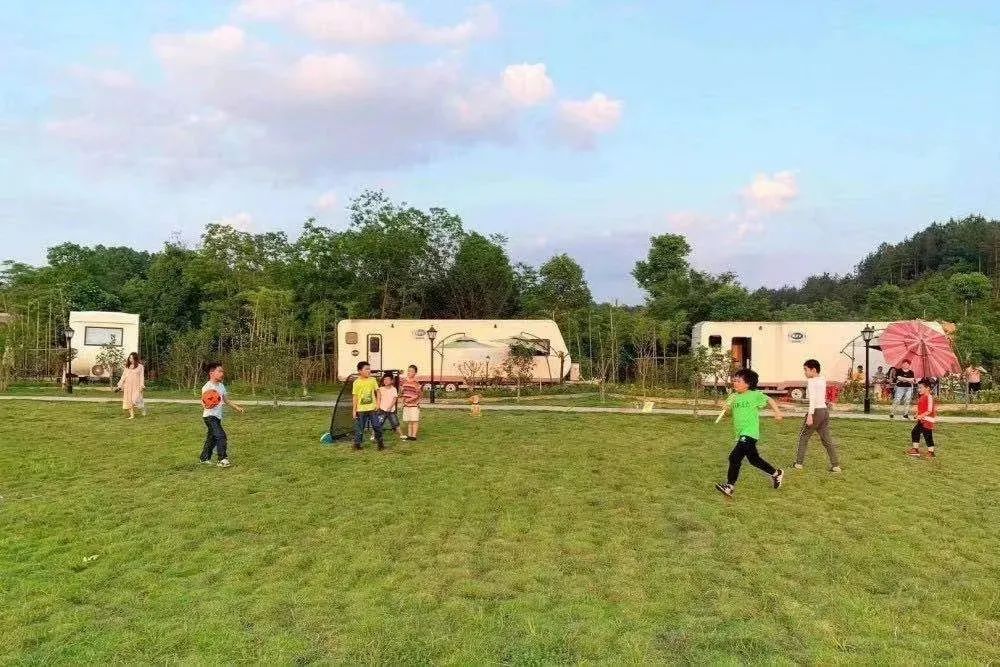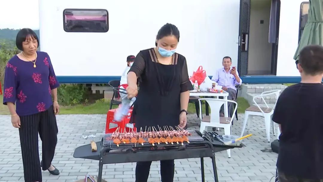 傍晚時(shí)分,游客們精心準(zhǔn)備晚上燒烤的食材,合作搭建露營帳篷,小朋友們則三五成群,在房車旁的兒童樂園內(nèi)玩耍,大家在歡聲笑語中盡情享受假期的休閑時(shí)光。