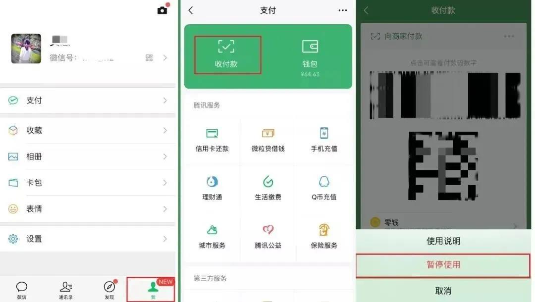 出于資金安全的考慮,微信也可暫停使用二維碼付款,等需要消費的時候再開通,具體操作步驟:打開微信支付頁面,點擊“我”→支付→收付款→暫停使用。
