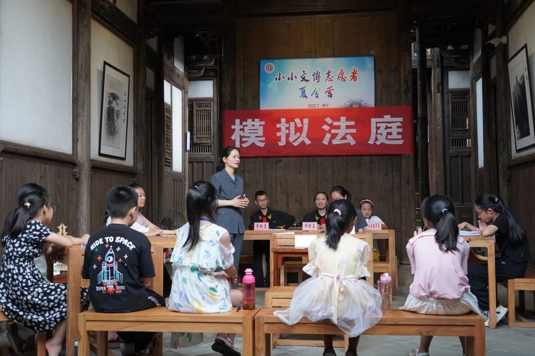 為將文化遺產(chǎn)保護(hù)與少年審判工作有機(jī)結(jié)合,泰寧法院創(chuàng)新普法形式,與泰寧縣博物館聯(lián)合舉辦2022年“小小志愿者”夏令營。7月18日,在泰寧古城尚書第世德堂開展模擬法庭、普法講座、文化遺產(chǎn)知識(shí)講解等活動(dòng),深受學(xué)生歡迎。