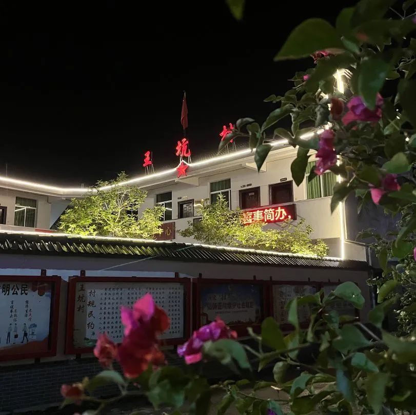 當夜幕降臨,,華燈初上寧靜的王坑村在盞盞燈光的裝點下,呈現出另一番景象,絢麗的燈光照亮了黑夜,點亮了村民的心,為王坑村扮靚了村顏。
