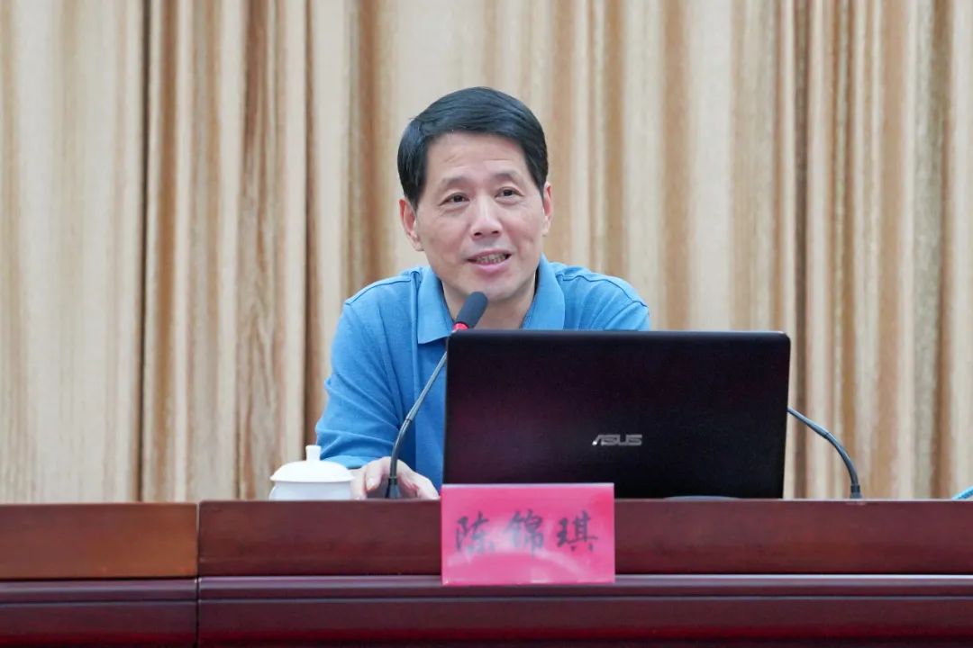 報告會上,陳錦琪圍繞深刻認識新時代十年的偉大變革、開辟馬克思主義中國化時代化新境界、以中國式現代化全面建成現代化強國、以偉大自我革命引領偉大社會革命等4個方面作了題為《高舉旗幟,全面建設社會主義現代化國家》專題報告,對黨的二十大精神作了全面系統深入的闡釋和解讀。