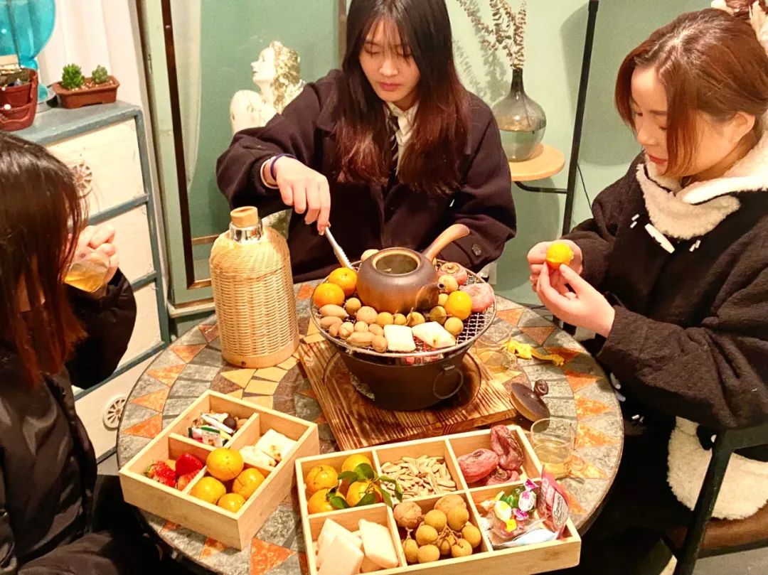 劈啪作響的炭火,繚繞蒸騰的茶水,在古樸的陶爐中,這一切的組合都顯得無比和諧與愜意,打造出了新時代的“松弛美學”,“圍爐煮茶”既能夠讓參與者感受到溫暖和精神上的輕松、慰藉,同時它也代表著一種更健康,更有節制的生活方式,代表了一份詩意和愜意,也具備一定的傳統煮茶文化傳承意味。 紅薯、柿子、糍粑,還有年糕和棉花糖......萬物皆可圍爐,甚至還可以備上一點干果花生和應季水果,如果愿意還可以加上點枸杞紅棗,休閑養生兩不誤。你總能找到屬于自己的一隅空間,來享受這個溫暖的冬天。