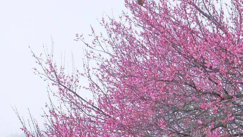 有的梅樹早已花開滿枝, 有的卻才剛剛盛開, 更有無數梅花在枝頭含苞待放。