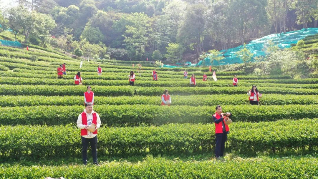 游客體驗茶葉采摘 截至目前,全縣現有茶園面積3.5萬畝,產量1500噸,年產值達1.6億元。現有規模茶企與茶葉專業合作社60余家,其中省級龍頭企業2家、市級龍頭企業7家;省級示范社1個、市級示范社2個。獲得SC認證14家,綠色食品認證8家、無公害1家。