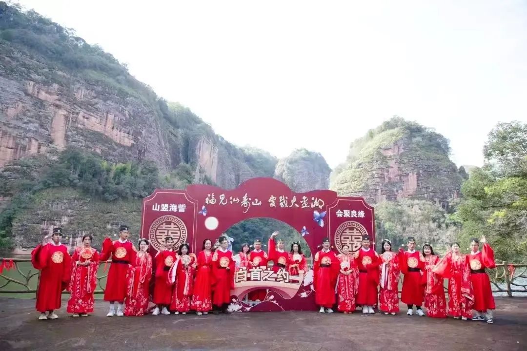 張六在致辭中表示,泰寧是個景色宜人、浪漫而又充滿詩意的地方,希望泰寧利用獨(dú)特優(yōu)勢,因地制宜開展“婚俗改革+文化、婚俗改革+文明、婚俗改革+旅游”特色創(chuàng)建,推進(jìn)婚姻領(lǐng)域移風(fēng)易俗工作,使婚俗文化與文明交織相融、同頻共振。