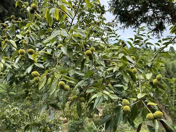 錐栗,別稱榛子、尖栗、珍珠栗,屬殼斗科。錐栗外觀亮澤、果殼薄軟、果仁飽滿,其肉質香糯甘飴、甜爽可口、清香余味,可養胃健脾、補充維生素等,具有獨特的“糯、甜、香”的品質特征。 開善鄉果穗家庭農場海拔600米,錐栗在霧氣繚繞下生長,陽光充足且雨水適量,成熟后口感甘甜香糯。農場通過“黨支部+家庭農場+基地+農戶”經營模式,帶動周邊近20戶農戶增收就業,預計今年錐栗產量近3萬斤,收入可達30萬元。
