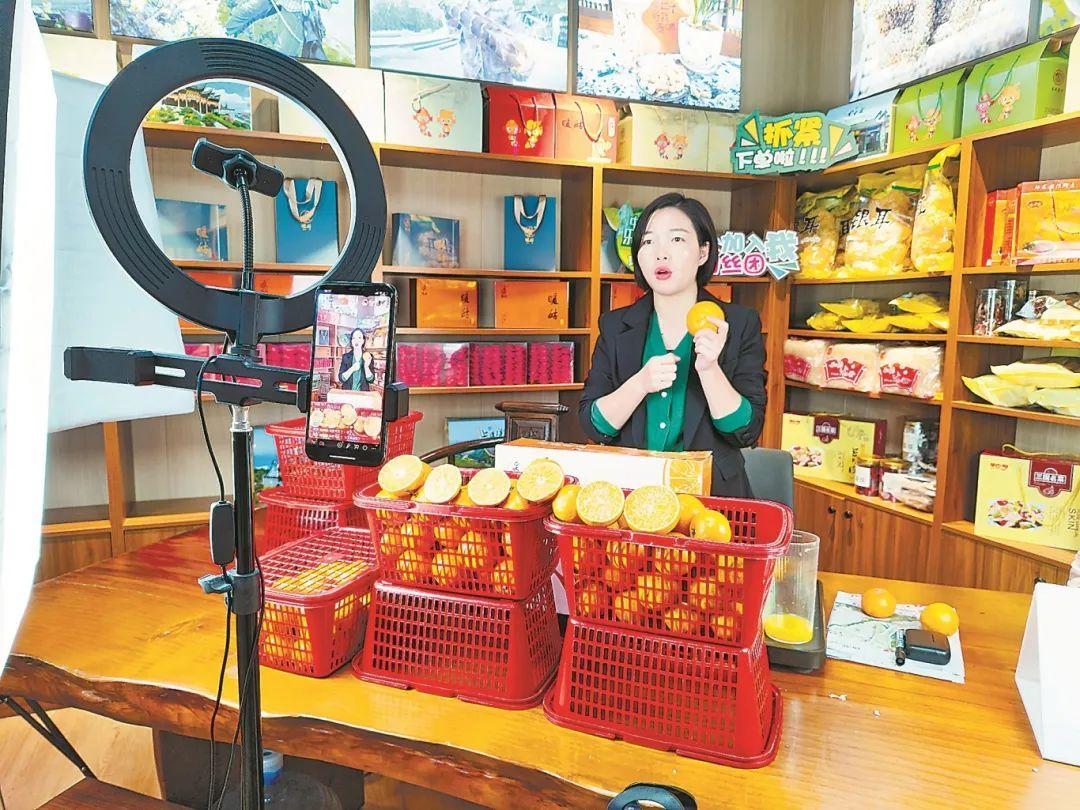 如今,邱婕租下了杉城鎮普洞村路口附近50畝地,而那里是大金湖景區的必經之路,生態果園趁著泰寧旅游這些年快速發展的東風也逐步走上正軌,目前共種植紅心火龍果7畝,草莓、西紅柿、葡萄等30畝,年產值60萬。 生態果園發展向好的同時,用工需求也逐步增加?!肮麍@內需要用工時,我首先考慮到在家待業的姐妹,并免費教授她們瓜果種植技術?!鼻矜颊f,新的一年,她打算進一步擴大瓜果種植規模,帶動更多周邊婦女群眾一起加入到生態種植行業當中。 電商助農增收 展現巾幗擔當 選品、上架、反饋……暖姑電商平臺負責人鄧瑞蓮雖已是泰寧小有名氣的“網紅”,但還是堅持親力親為操持著直播間的運營,并將網友購買產品后的意見及時反饋給農戶。