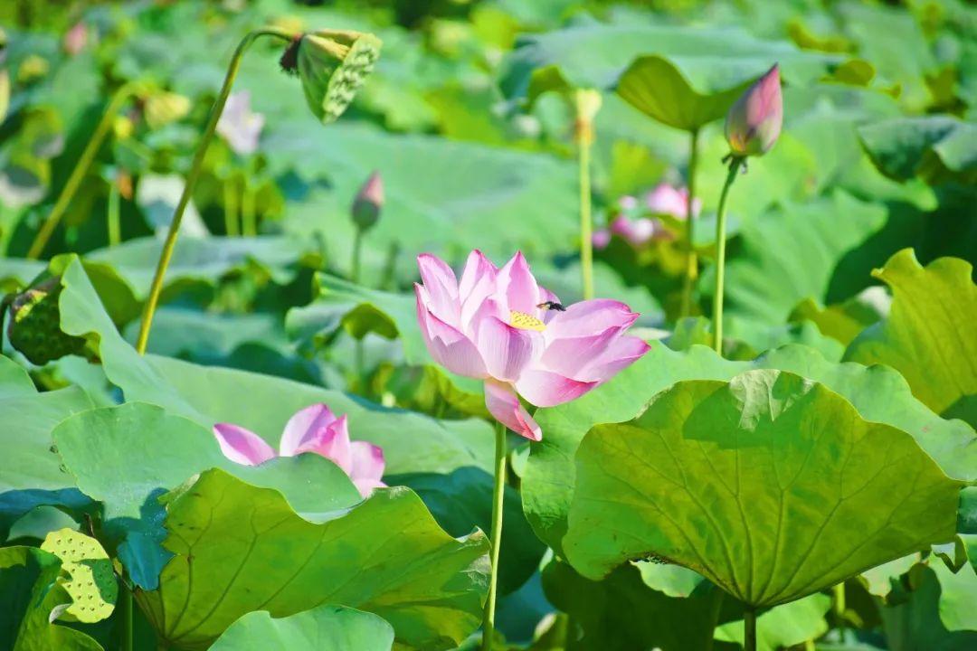 悠悠夏日,荷韻飄香。眼下正值蓮子收獲的季節,7月15日,走進泰寧縣朱口鎮王坑村的百畝荷田,村民們正忙著采摘成熟的蓮子,一幅美麗的豐收畫卷盡收眼底。 放眼望去,層層疊疊的荷葉間,一朵朵荷花亭亭玉立,微風拂過,沉甸甸的蓮蓬隨風搖曳,碧波蕩漾,清香四溢。村民們穿行其間,手腳麻利、動作熟練地采摘下一個個顆粒飽滿的蓮蓬,他們時而露出頭頂,時而融入荷葉中,一會兒功夫,手里的袋子就裝得滿滿當當。