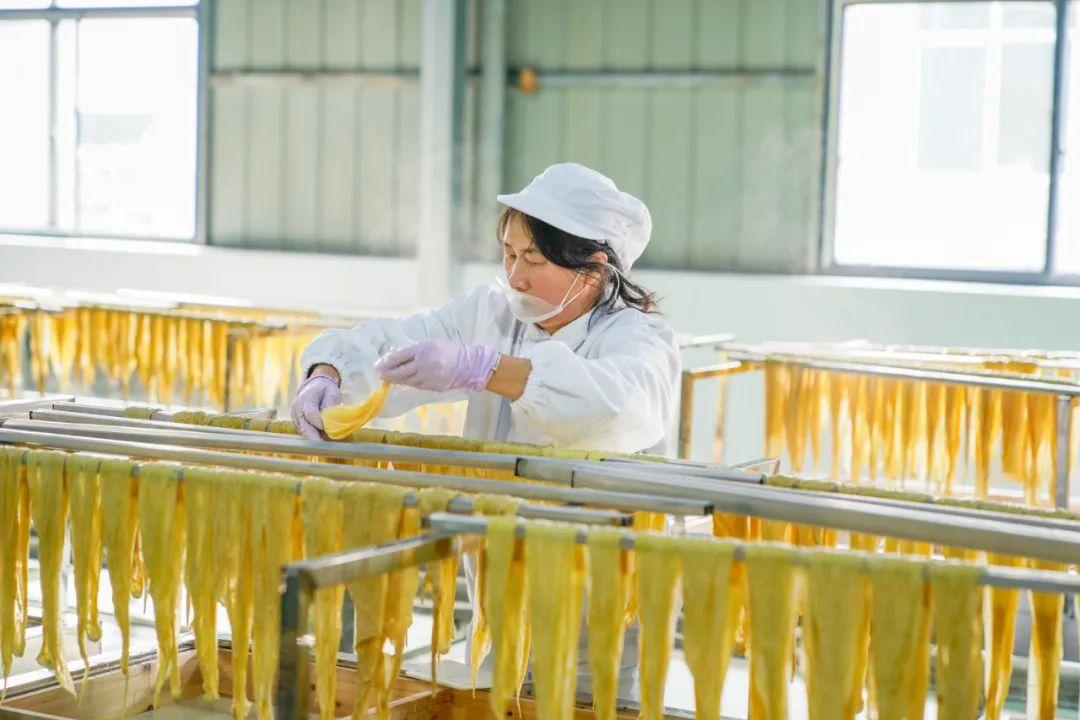 “目前,加工廠已有生產流水線3條、蒸煮車間1個、烘烤車間1個,生產的多道工序已實現半機械化生產,大大地提高了制作腐竹的效率和質量。” 腐竹加工廠負責人楊林均說。 盤活閑置資產, 在幫助村民鼓起“錢袋子”的同時, 也讓村集體經濟發展 變得更有“錢景”。 目前,腐竹加工廠每日的產量可達200余斤,年產值可達100萬元,主要銷往周邊縣區以及福州、泉州等地,可以增加村集體收入約2萬元,為附近村民“家門口”就業提供崗位。
