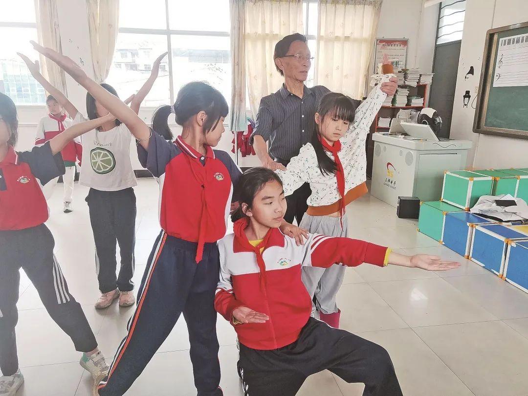 黎秀珍正在指導(dǎo)戲曲動作 與此同時,黎秀珍牽頭正式成立了輕騎兵志愿服務(wù)隊,開始實施“梅林文化薪火傳”志愿服務(wù)項目。一有機會,他就與志同道合的梅林愛好者組成志愿隊,義務(wù)送戲下鄉(xiāng)。 鄧建平師從黎秀珍,也是服務(wù)隊的一員,他深刻記得第一次到上青鄉(xiāng)川里村為老人們“送戲”時的場景。 “表演結(jié)束后,他們拉著我們的手,連連道謝,激動的流下眼淚,我也特別的感動?!编嚱ㄆ秸f,他真切的感受到老百姓對戲曲的熱愛,對文化生活的渴求,激勵著他打磨提升演藝水平的決心。 和他一樣參加志愿服務(wù)的有導(dǎo)游、排工,有菜農(nóng)、農(nóng)民工,有村干部、個體戶,還有護士、文員等來自各行各業(yè),他們通過不懈努力,以志愿服務(wù)的形式,將梅林文化推廣到千家萬戶。 為弘揚傳統(tǒng)文化,讓更多青少年喜歡梅林戲,黎秀珍還經(jīng)常利用空閑時間與朱口鎮(zhèn)中心小學梅林戲傳習班學生共同編排梅林小品劇,以開課、展演等方式傳授梅林戲技藝。