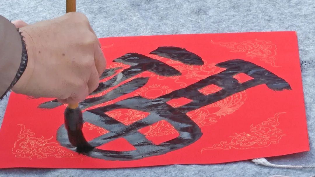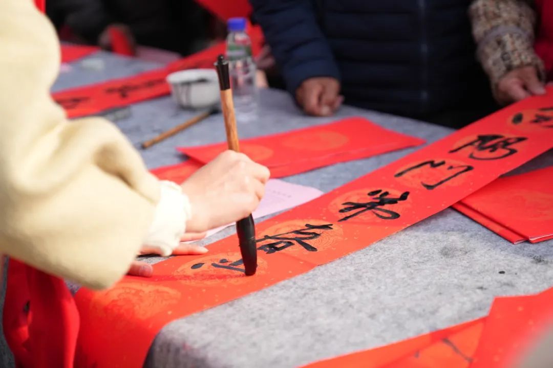 活動現場,多位書法愛好者及書法家齊聚一堂,揮毫潑墨,他們筆走龍蛇,一幅幅寓意吉祥的春聯、一個個飽含祝福的“?!弊衷诠P下誕生。紅彤彤的紙張配上剛勁有力或飄逸靈動的書法字體,盡顯傳統藝術之美,承載著對大家新年美好的期許。市民們則圍在書桌旁欣賞書法創作過程,耐心等待屬于自己的那份新春祝福。