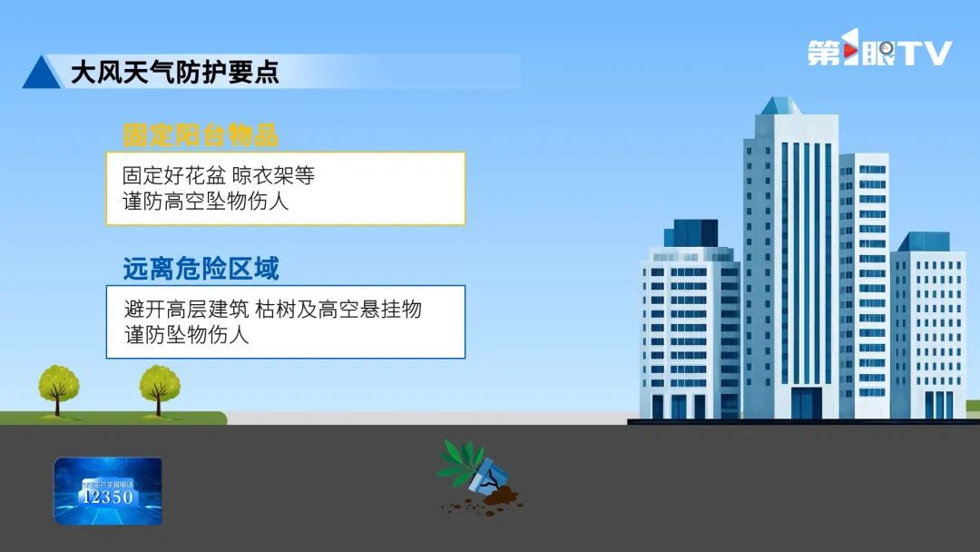 若遭遇冰雹天氣,要及時躲避,迅速進入室內或堅固遮蔽物下,避免露天活動。無遮擋時,可以用背包、厚衣物等護住頭部。車輛盡快停入地下車庫或用厚車衣覆蓋車身,減少冰雹損傷。遭遇大風天氣時要注意固定好陽臺上的物品,例如花盆、晾衣架等,謹防高空墜物。行人要避開高層建筑、枯樹及高空懸掛物,謹防墜物傷人。