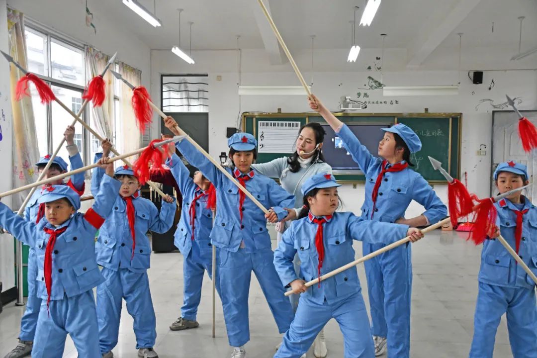 “紅纓槍閃閃亮,緊握手中保家鄉。俺為紅軍站好崗,打倒土豪斬豺狼……”近日,在泰寧縣朱口鎮中心小學的校園里,一曲《少小報國爭榮光》的梅林戲唱段清脆響起。孩子們雖帶著幾分青澀的唱腔,卻韻味獨特,一招一式有模有樣,仿佛將人們帶入那個熱血激昂的革命年代。