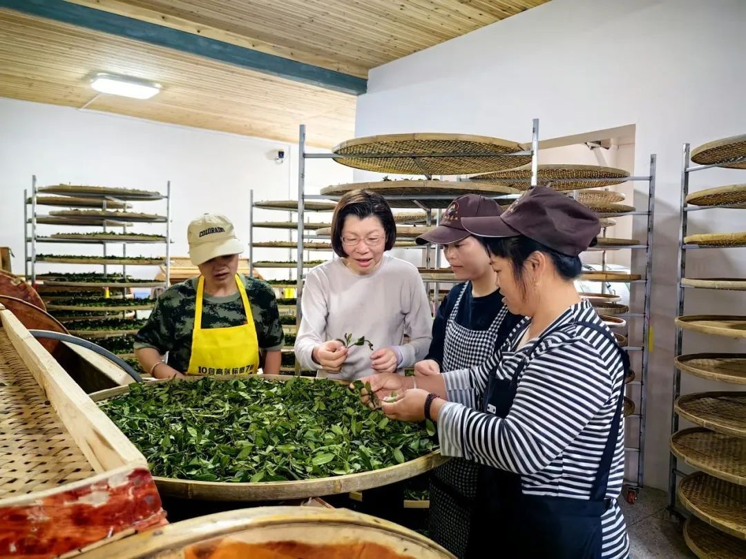 與此同時,福建左如玉閩臺茶業有限公司車間內一派繁忙景象。新鮮采摘的茶葉經攤青工序后,有序進入炒制、烘干環節。制茶機械轟鳴作響,臺灣制茶師左如玉全神貫注,緊盯溫度控制器,憑借精湛技藝精準把控火候,讓茶葉在鍋中翻滾、舒展,空氣中迅速彌漫起令人陶醉的醇厚茶香。