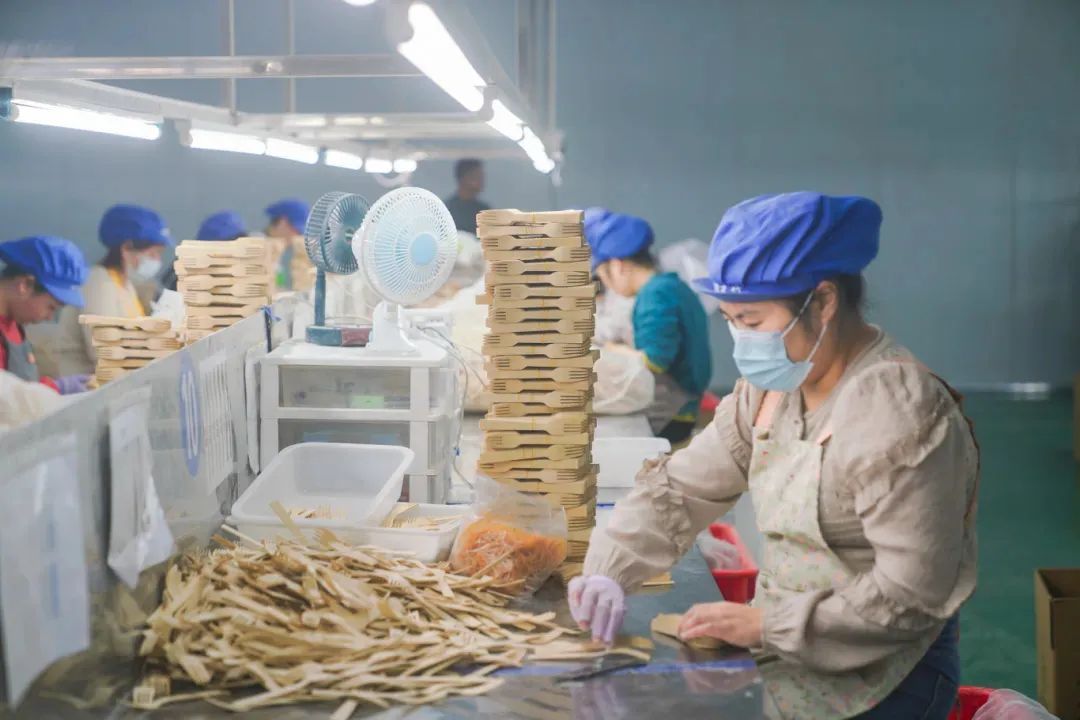 其中,煙葉種植9000畝,產量19633擔,年產值約5000萬元;稻米制種面積常年穩定在1.5萬多畝,種植100畝以上的制種大戶有40余戶,年產量約4500噸,年產值約8000萬元,位居全縣第一。目前煙稻融合產業基地產值已破億元。建成“育繁推一體化”高標準水稻制種試驗田200余畝。 工農聯動,夯實共富“雙輪驅動”。 當地立足竹資源優勢,聚焦竹制品產業,重點推進龍湖工業園區發展,引進中琉科技、宇鑫竹業等23家企業,形成“原竹進園—加工轉化—成品出園”全鏈條,打造“以竹代塑”生態工業樣板。如今,園區生產竹筷、竹膠板、竹炭等10余種產品,日均消耗毛竹1000噸,帶動就業700余人。
