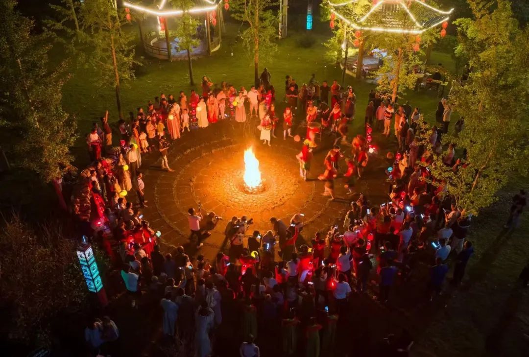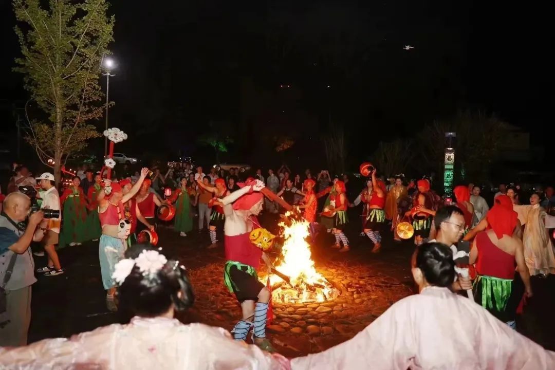 ▲篝火晚會與儺舞表演 赤膊龍燈親體驗