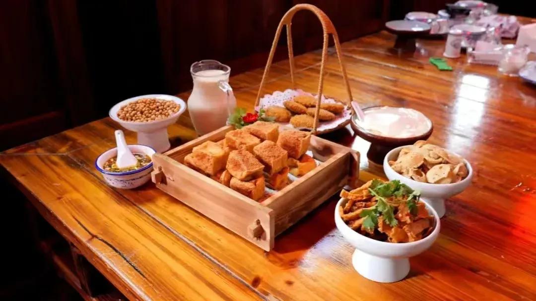 韭菜汁染就的翡翠餅皮,卷起豆干與蝦米的咸鮮,口感細膩,餡料咸香,糯軟清甜。 游漿豆腐