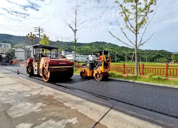 近日, 泰寧縣開善鄉儒坊村至墩上村 “白改黑”項目火熱推進。 灑水車清洗路面,運輸車來回奔忙, 工人們分段清理路基、噴灑粘層油, 各環節銜接順暢, 瀝青面層正一米米向前鋪展。