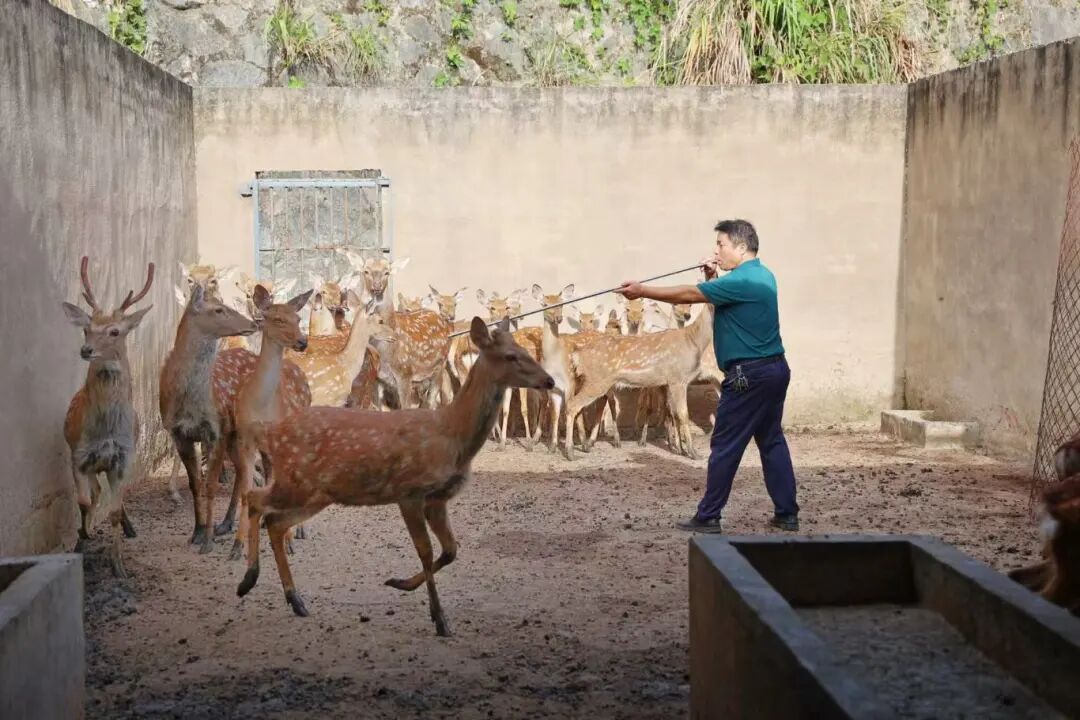 金秋九月,碩果累累。9月11日,在泰寧縣杉城鎮的大自然梅花鹿業發展有限公司的養殖場內卻是一派忙碌景象。公司負責人廖財應和員工們正麻利地備好麻藥針、止疼藥、草木灰和手鋸,準備迎接當天的鹿茸采收——這是一年中最關鍵的“黃金時段”。