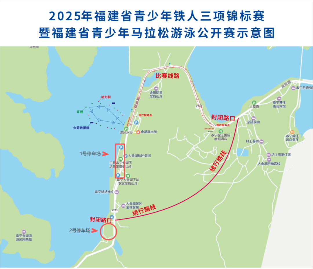 2025年福建省青少年鐵人三項錦標賽暨福建省青少年馬拉松游泳公開賽將于9月20日至21日在泰寧縣舉行。為確保比賽順利進行,根據《中華人民共和國道路交通安全法》第三十九條規定,決定在9月20日對部分道路采取臨時交通管制措施,現將有關事項通告如下: 一、管制時間 2025年9月20日(星期六)6時30分起至2025年9月20日12時止。 二、管制路段 泰寧縣X762縣道南會村村部路口至金湖金鑫加油站路段。 三、繞行路段 交通管制期間,可由錦江國際酒店門前新路繞行至金湖金鑫加油站路段。 封閉路段 注意繞行