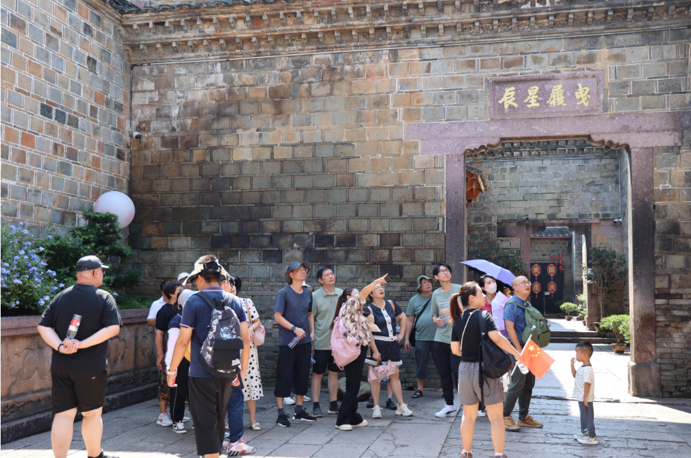 相鄰的魚子燈制作區(qū),孩子們?cè)诩议L(zhǎng)協(xié)助下扎竹篾、糊彩紙、裝燈穗,親手制作獨(dú)具泰寧特色的魚子燈,游客們紛紛拍照留念,定格傳統(tǒng)手作之美。 此刻的博覽苑構(gòu)成了一個(gè)多感官的沉浸式劇場(chǎng),不再是靜態(tài)的陳列,而是可聽、可看、可觸、可感的活態(tài)傳承。古老的非遺在與現(xiàn)代的互動(dòng)中,煥發(fā)出勃勃生機(jī),讓每一位踏入此地的游客,都成為了這熱鬧場(chǎng)景的一部分,也成為了文化傳承的瞬間見證者。 穿過(guò)熱鬧的非遺博覽苑,在全國(guó)重點(diǎn)文物保護(hù)單位——尚書第。 游客們漫步在明代兵部尚書李春燁的府邸中,觸摸著精美的石雕、磚雕,仰頭打量飛檐翹角。不少小朋友不斷發(fā)問(wèn):“古人是怎么把房子建得這么牢固又好看的?”在講解員的介紹下,游客不僅了解了尚書第“三廳九棟”的建筑格局,更對(duì)泰寧崇文重教、科舉鼎盛的人文傳統(tǒng)有了深刻認(rèn)識(shí)。