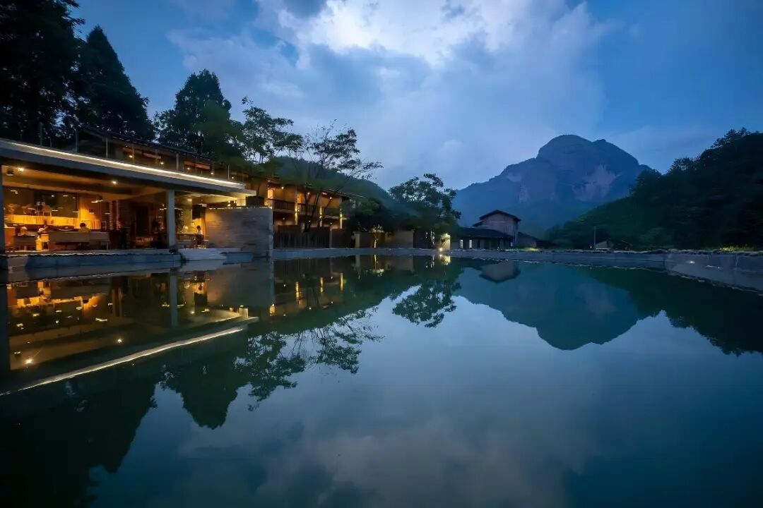 白天的戶外運動過后,住宿體驗成為留住游客的關鍵一環。花筑奢·泰寧晟境茶文化度假酒店保留老墻的質樸外觀,室內采用五星級酒店標準的設計,可以窩在書吧沙發上品茗看書,也可以到一旁的天然泉水游泳池洗去疲憊。