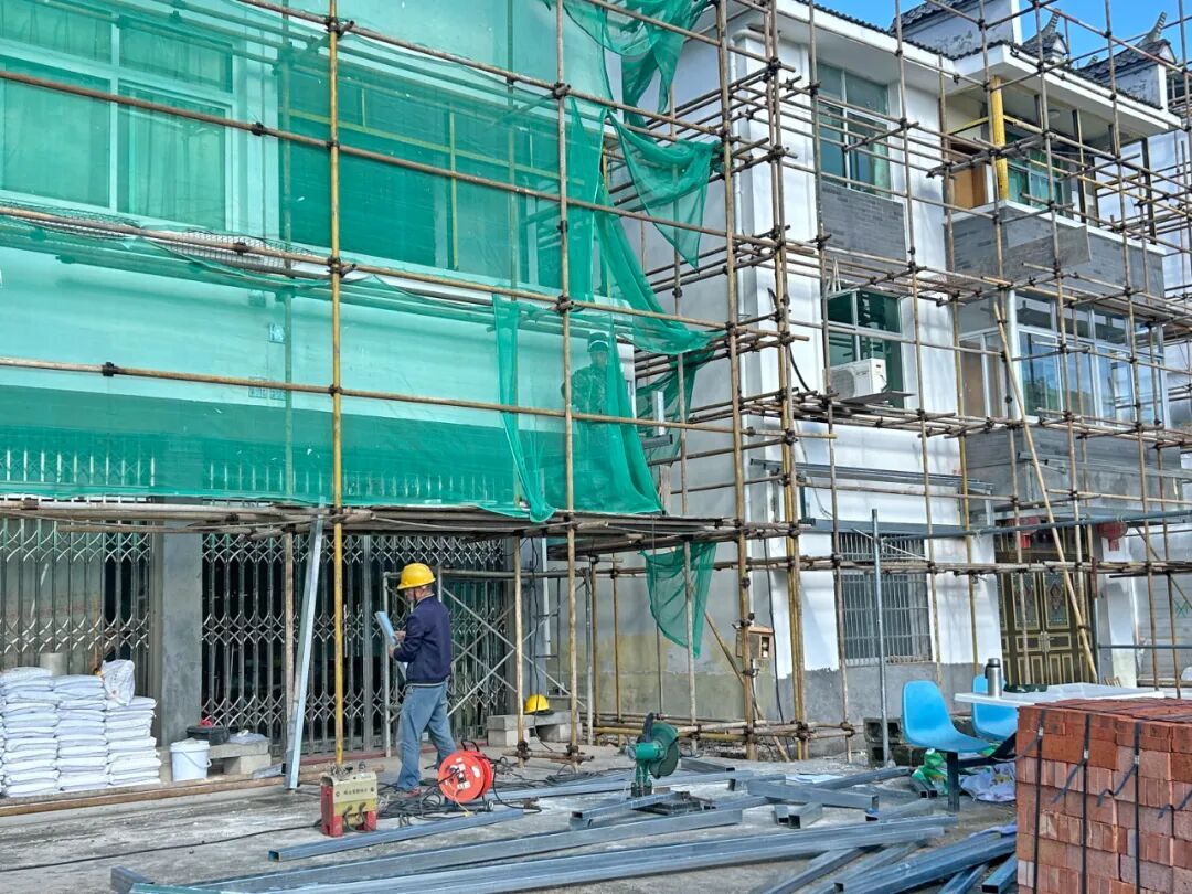 11月14日,在泰寧縣杉城鎮(zhèn)長(zhǎng)興村立面改造提升項(xiàng)目工程施工現(xiàn)場(chǎng),工人們正在搭腳手架,刷外立面底漆,粉刷房屋外墻。民房披“新衣”,鄉(xiāng)村煥“新顏”,一幅幅絢麗多彩的鄉(xiāng)村畫卷正徐徐展開。